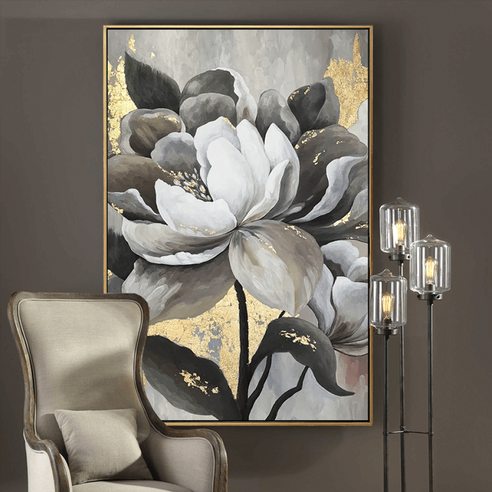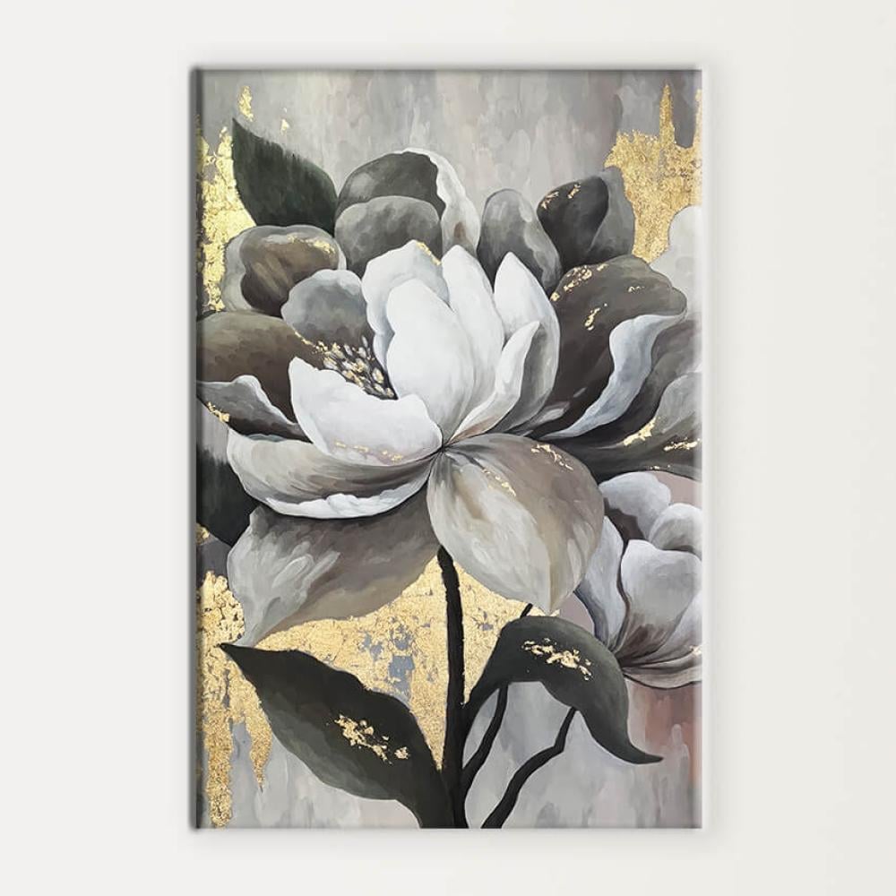 لوحة ثلاثية الأبعاد كانفس لزهرة لوتس أنيقة بألوان ترابية فخمة مثل البيج والرمادي والأسود، ولمسات ذهبية تعطيها لمعة راقية ✨