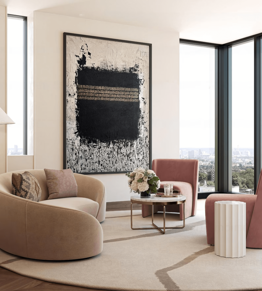 لوحة جدارية تصميم طولي آلوان فاتحة مميزة بتصميم زهور متداخلة ثلاثي الآبعاد