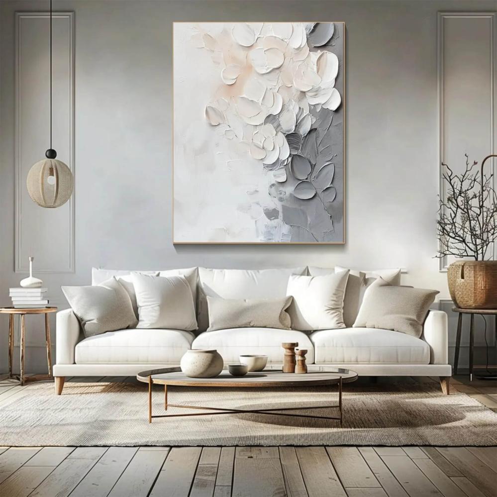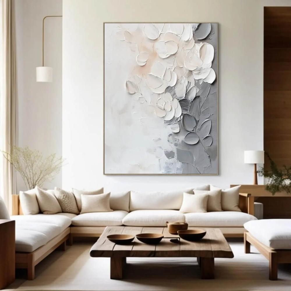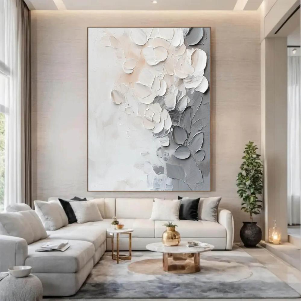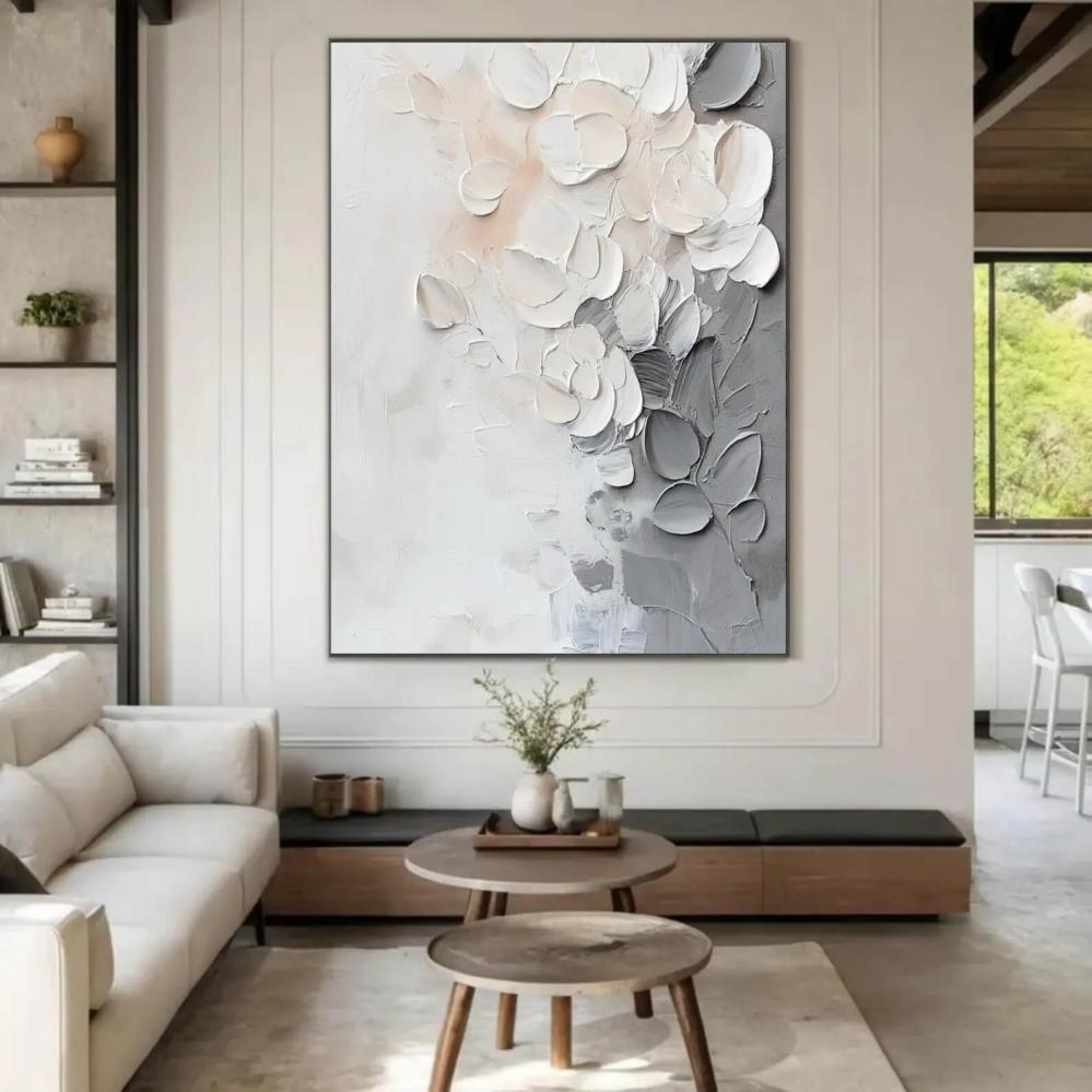 لوحة جدارية تصميم طولي آلوان فاتحة مميزة بتصميم زهور متداخلة ثلاثي الآبعاد