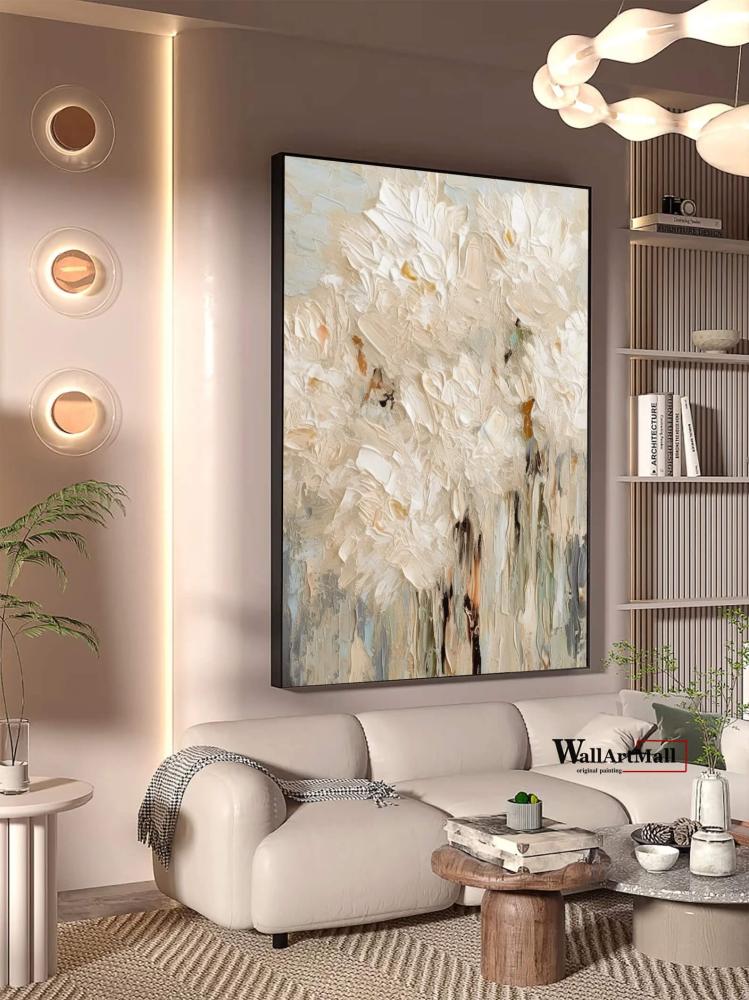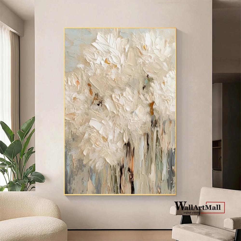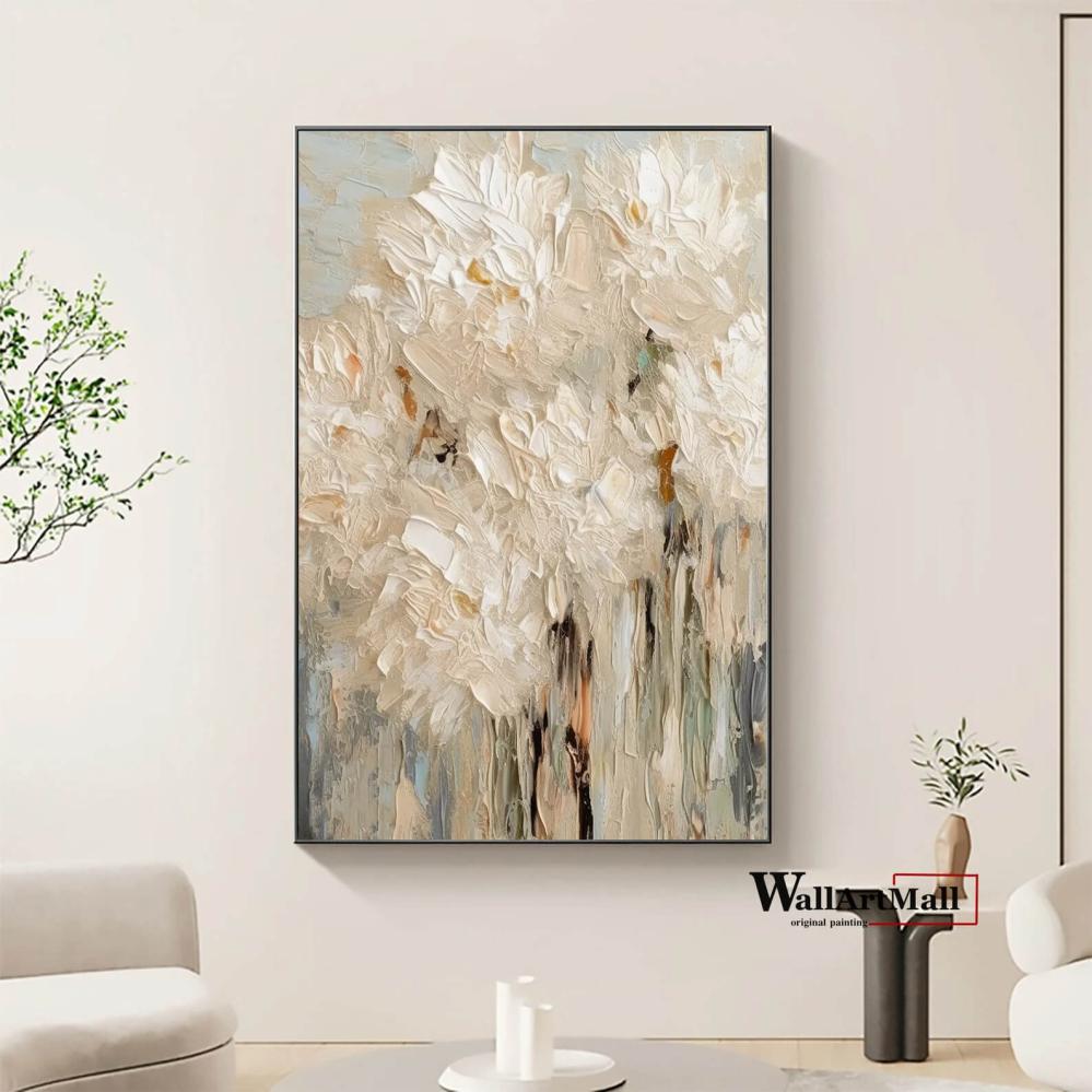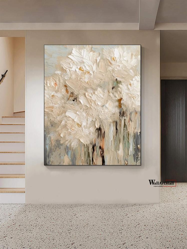 لوحة جدارية تصميم طولي آلوان فاتحة مميزة بتصميم زهور متداخلة ثلاثي الآبعاد