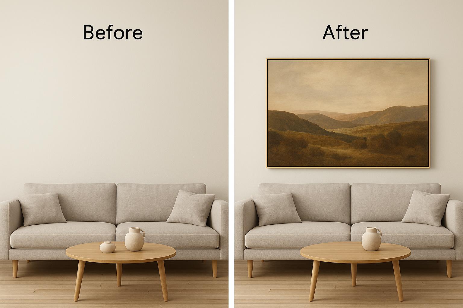 المقاس له دور أساسي في جمال اللوحة داخل المكان. مثلاً: