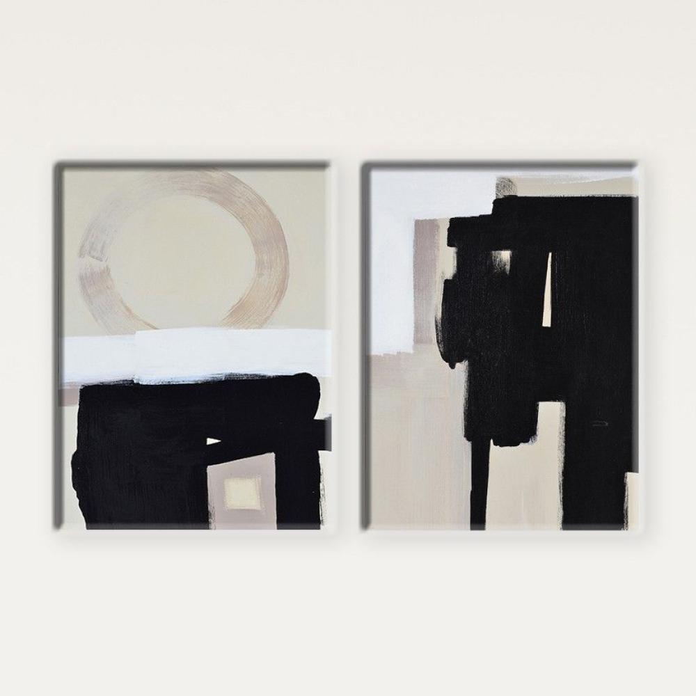 طقم لوحتين كانفس تجريدية بالألوان الحيادية والأسود الأنيق