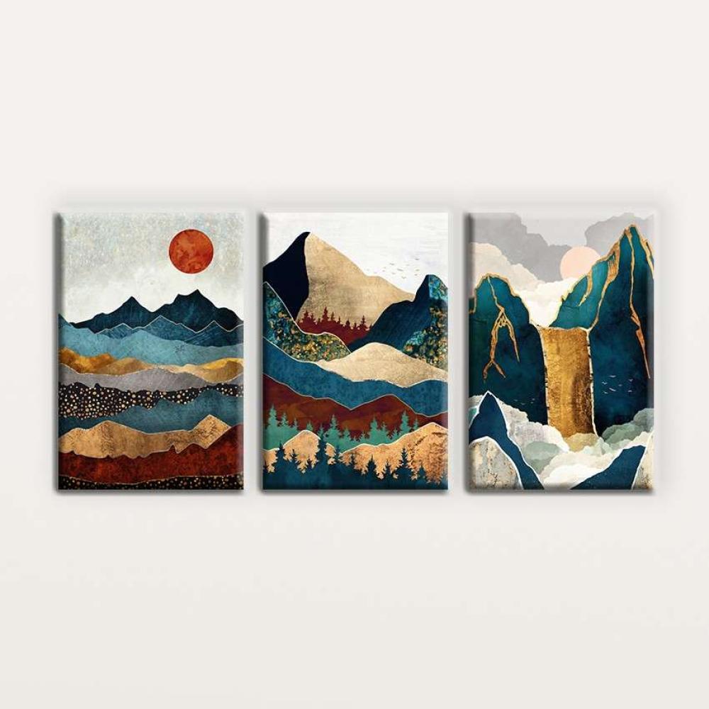 طقم ثلاثي كانفس منظر جبلي بألوان ترابية وفخمة