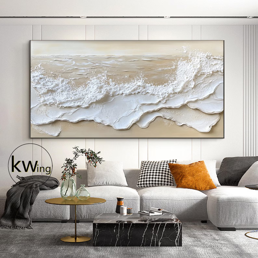 لوحة جدارية للأمواج البحر ألوان فاتحة راقية وهادئة تضفي فخامة لمساحتك